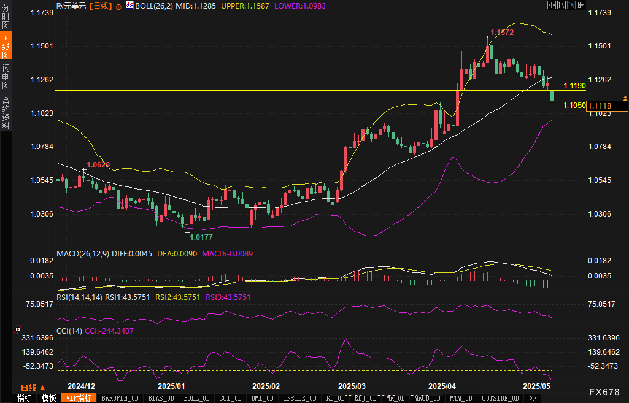 从短期来看,美国的利差持续支持美元,尽管欧元/美元目前已回撤至4月以来的低点。有分析认为,欧元/美元技术面显示出进一步的下行压力,若无法维持在50日均线1.1070上方,可能会加速下探。