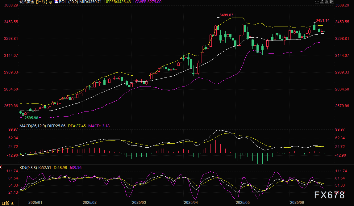 从技术面看,金价在3347.53美元/盎司的低位获得支撑,并在3387.77美元/盎司的高位遇阻,显示市场在当前水平附近存在较强的多空博弈。投资者需密切关注未来两周特朗普政府对中东冲突的立场、E3与伊朗的外交谈判进展以及美联储对通胀和利率的最新表态。这些因素将共同决定金价能否突破当前震荡区间,迈向更高水平。