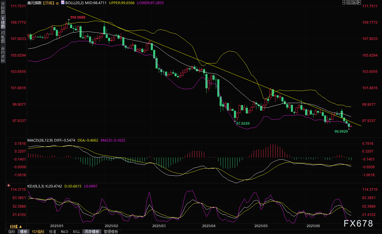 FXTM外汇官网APP讯——美元正经历一场前所未有的低谷,周五(6月27日)美元指数徘徊在三年半以来的最低点附近,交易员们正密切关注美国货币政策的风向转变。与此同时,欧元和英镑强势崛起,守在隔夜触及2021年底以来的最高水平附近,而特朗普即将到来的关税最后期限,更是为市场增添了一层紧张气氛。美联储主席鲍威尔的继任者传闻、鸽派政策预期、以及地缘政治局势的缓和,共同塑造了当前汇市的复杂格局。