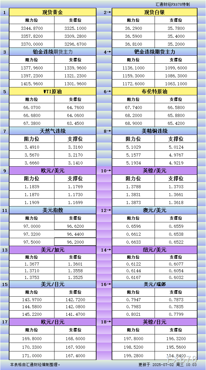 【FXTM外汇集团】7月2日亚市更新支撑阻力:18品种支撑阻力(金银铂钯原油天然气铜及十大货币对) 时间:2025-07-02 10:14:00 分类:富拓官网开户 编辑:FXTM富拓 FXTM外汇官网APP讯——7月2日亚市更新的黄金、白银、铂金、钯金、原油、天然气、铜(商品)以及:美元指数、欧元、英镑、日元、瑞郎、澳元、加元、纽元(热门货币对)的支撑阻力位一览。 本文链接:http://www.zozhe.net/news/1777.html 上一篇:【FXTM官网】特朗普施压无果,鲍威尔坚守底线:美联储降息路在何方? 下一篇: 【富拓官网】从12月到9月!高盛为何看好美联储提前降息? 相关文章 【FXTM外汇集团】一张图:波罗的海指数上涨,因船舶运费全面走高 【富拓官网】8月26日美市更新支撑阻力:18品种支撑阻力(金银铂钯原油天然气铜及十大货币对) 【FXTM外汇集团】技术分析:欧元/美元汇率波动性加剧 【FXTM官网】美元/日元承压,日元收复部分失地 【FXTM外汇官网】原油技术分析:跌破64.00整数关口,或将下探近期低点 【FXTM外汇集团】纽元暴涨后连跌?除特朗普搅局,这些数据才是关键!