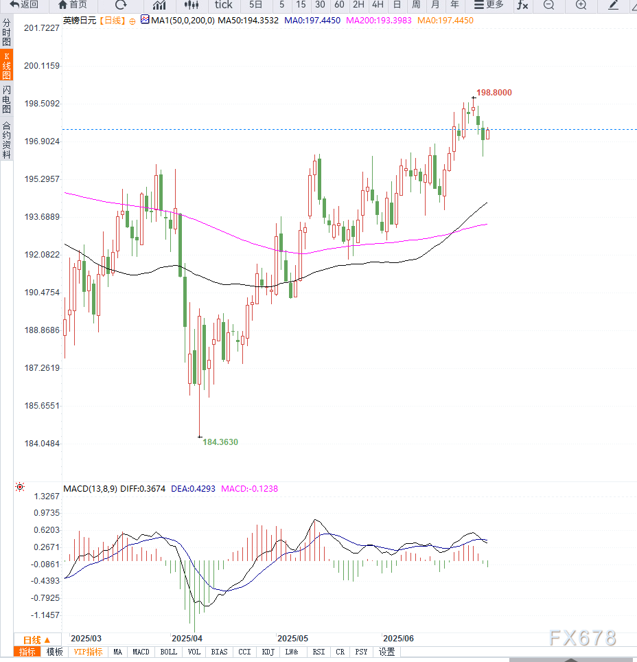 基本面上,日元的疲弱更多源于外部施压而非本国经济疲软,短期贬值压力仍在;英镑则受英国宏观预期相对稳定支撑。关注特朗普后续贸易表态是否引发日元新一轮抛售,并警惕200整数位附近的“多空分水岭”技术冲突。