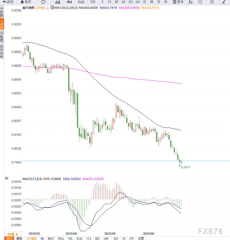 若美国就业数据继续走弱,不排除美元/瑞郎将刷新新低,甚至测试0.7800关口以下水平。从风险管理角度看,短线应关注0.7875支撑位是否失守,而中线可继续关注两国政策差异带来的趋势性机会。