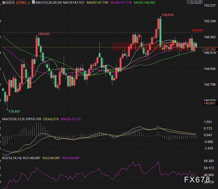 技术显示美元兑日元价格不超过149.04时均为空头主导,10、20、30日均线空头排列且在汇价价格上方压制汇价,今日事件加剧了日元对美元币值的提升。