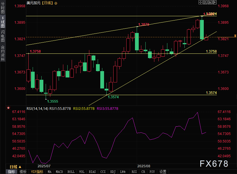 美联储主席鲍威尔上周五在杰克逊霍尔研讨会上的讲话中表示,他以下行就业风险为由,对放松货币政策限制持开放态度,美元兑加元仍然面临压力。市场对美联储9月降息的预期显著升温,这导致美元承压,此为美元兑加元走弱的主要因素之一。