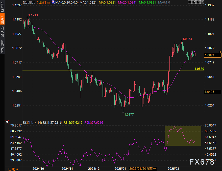 欧元区3月核心HICP同比增速放缓至2.4%(前值2.6%),低于预期。ECB行长拉加德在爱尔兰电台采访中直言“通胀战役接近尾声”,暗示本月政策会议可能启动降息。然而,若特朗普对欧盟加征高额关税,欧元区经济或面临额外0.5%的GDP增速拖累(拉加德上周预警)。欧盟委员会主席冯德莱恩虽称“不倾向报复”,但明确表示已备妥反制工具。政策宽松预期与贸易风险形成对冲,限制了欧元波动幅度。